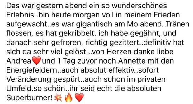 kann sich dein Körper sofort entspannen und etwas anderes wählen als Kampf und Erschöpfung. Deine Liebsten werden es dir danken. Du wirst mega anziehend für deine/n Traumpartner:in und auch für deine Lieblingskunden.