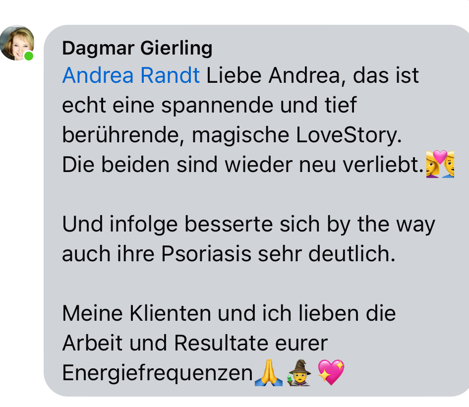 Gemeinsam mit ihrem Partner Pedro erforscht sie in ihren hochschwingenden Retreats in Europa immer weiter das Feld der Quantenheilung und Energiemedizin, so dass ihre Kunden außergewöhnliche Ergebnisse erzielen.